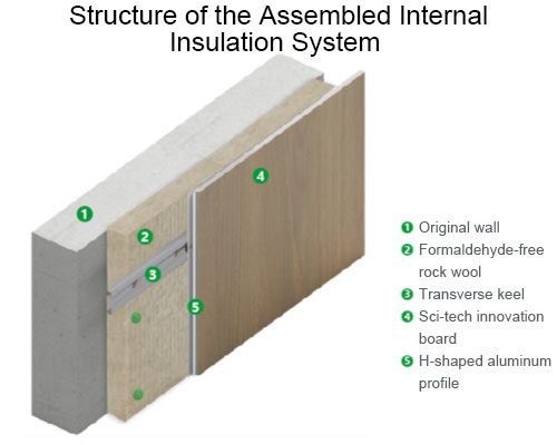 The core material of 3TREES’s interior wall insulation integrated system is the formaldehyde-free, safe and environmental-friendly insulation rock wool with low thermal conductivity independently developed by 3TREES.